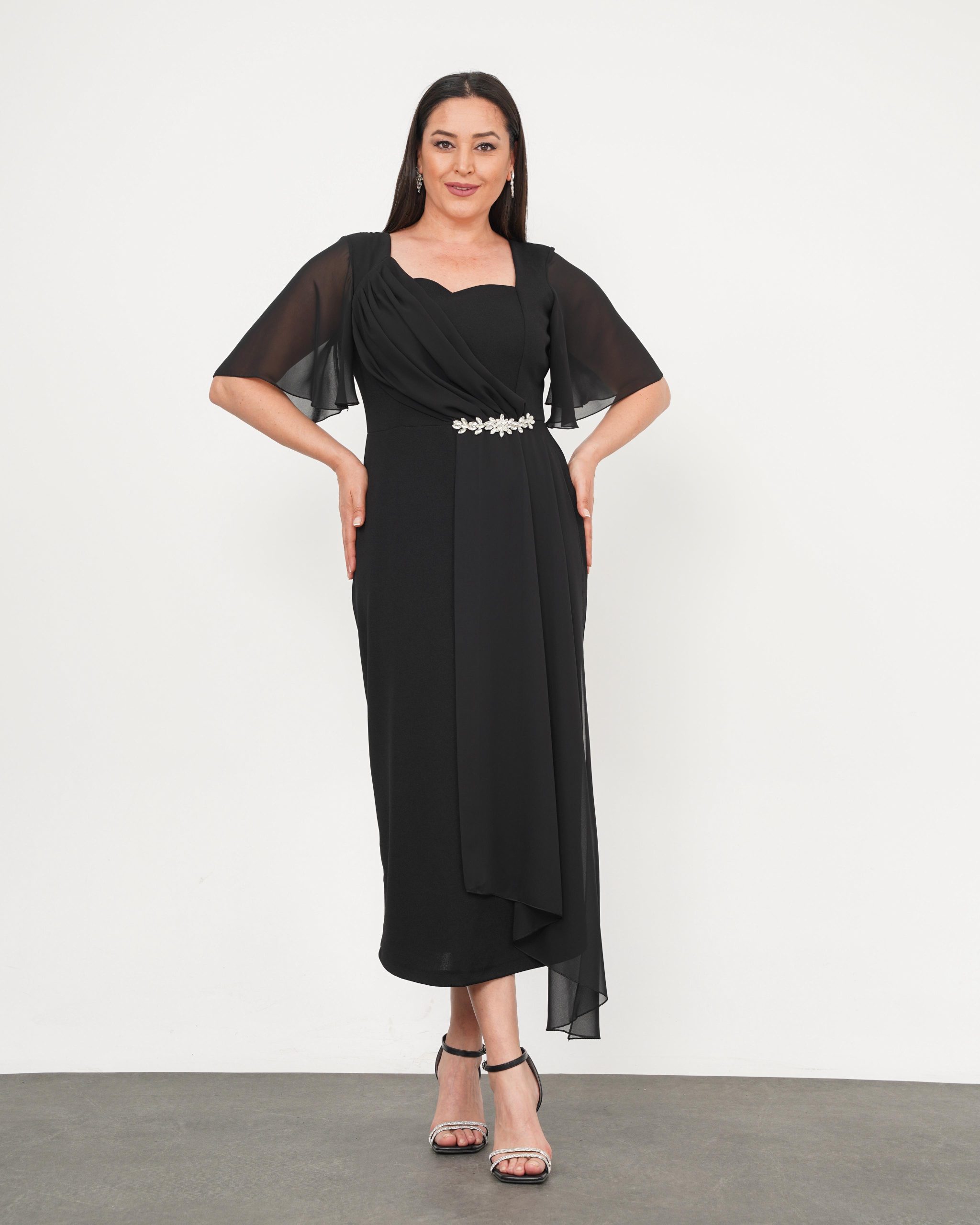 Crna midi elegantna haljina