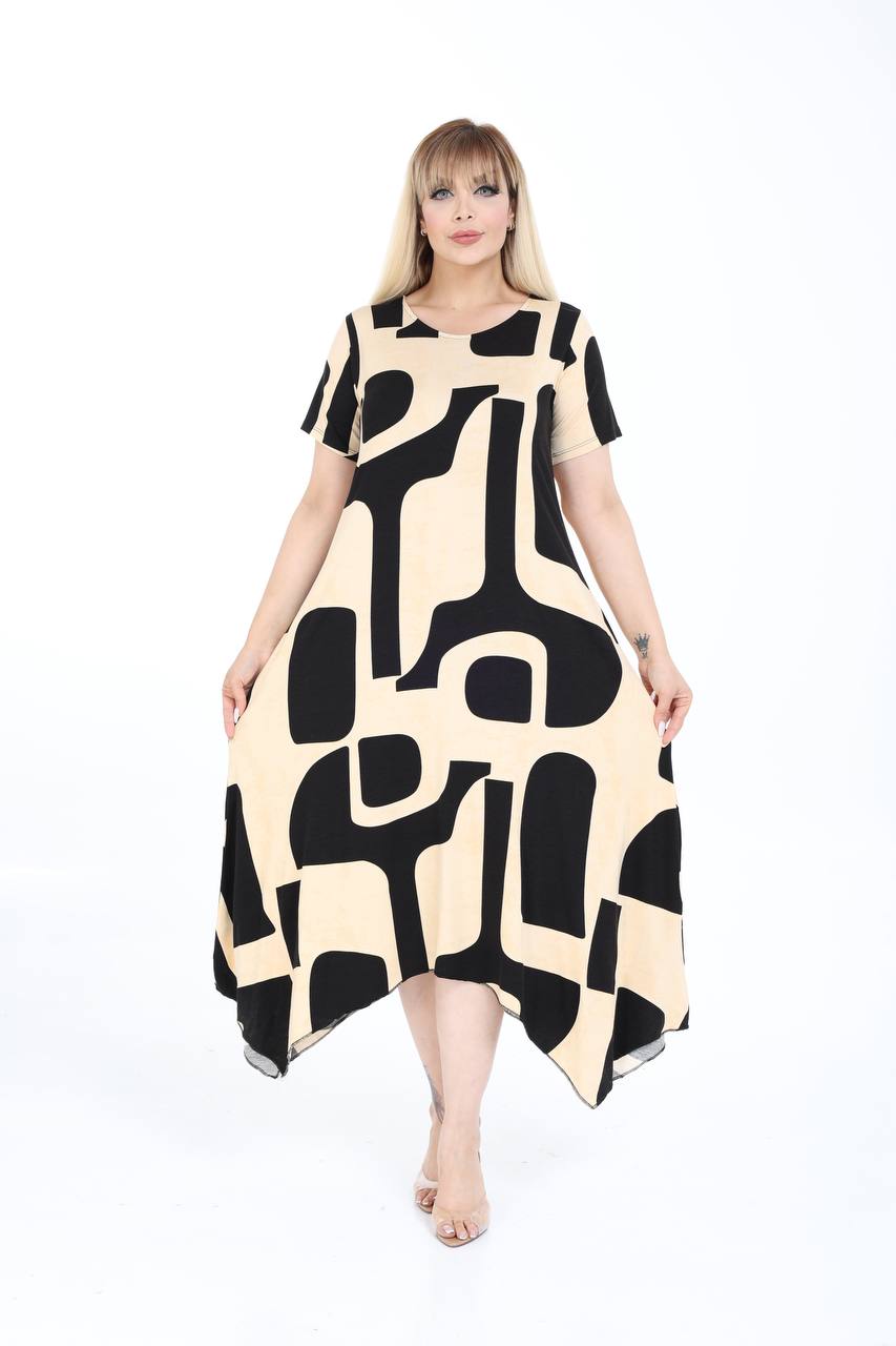 Crna haljina sa krem šarama za punije dame
