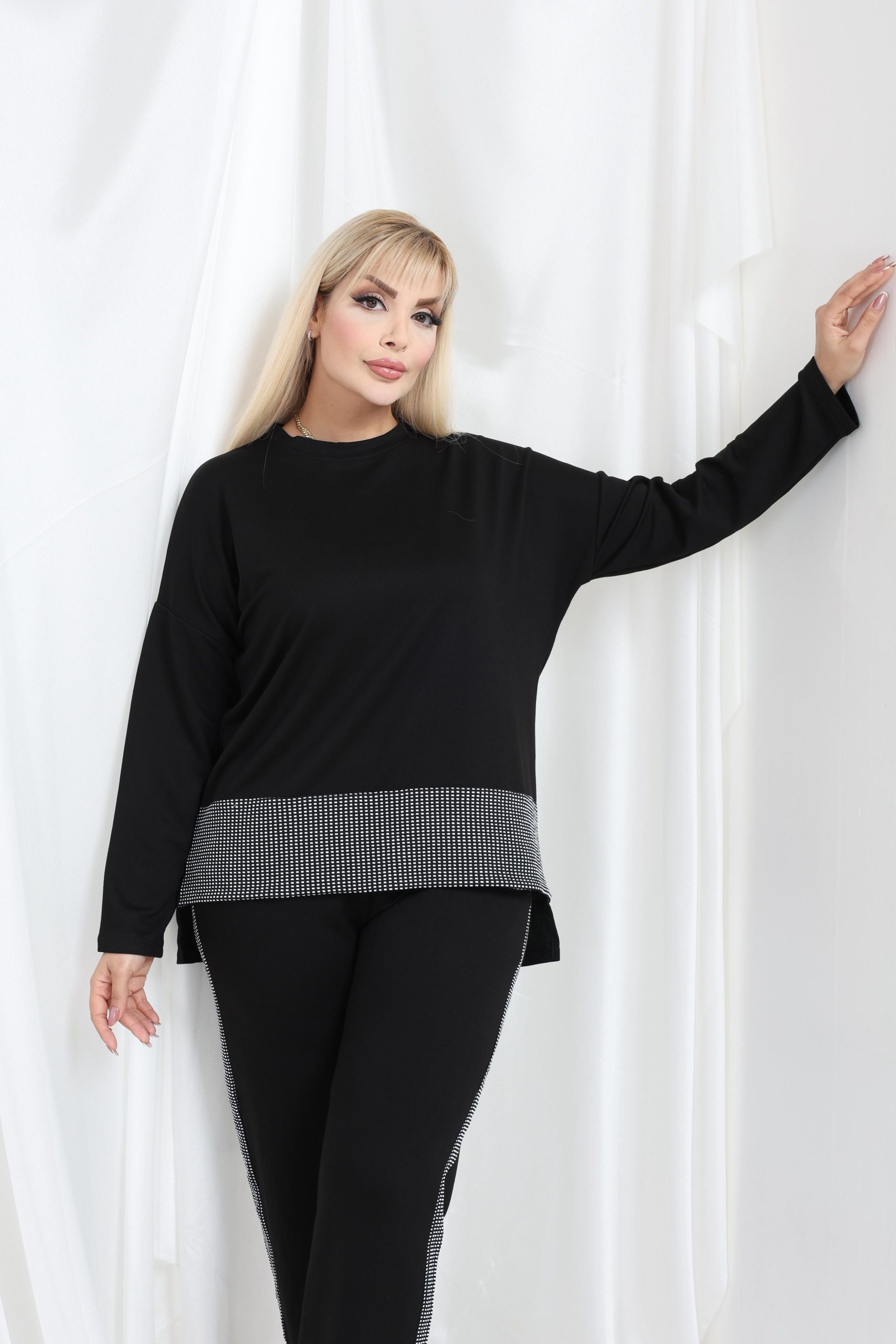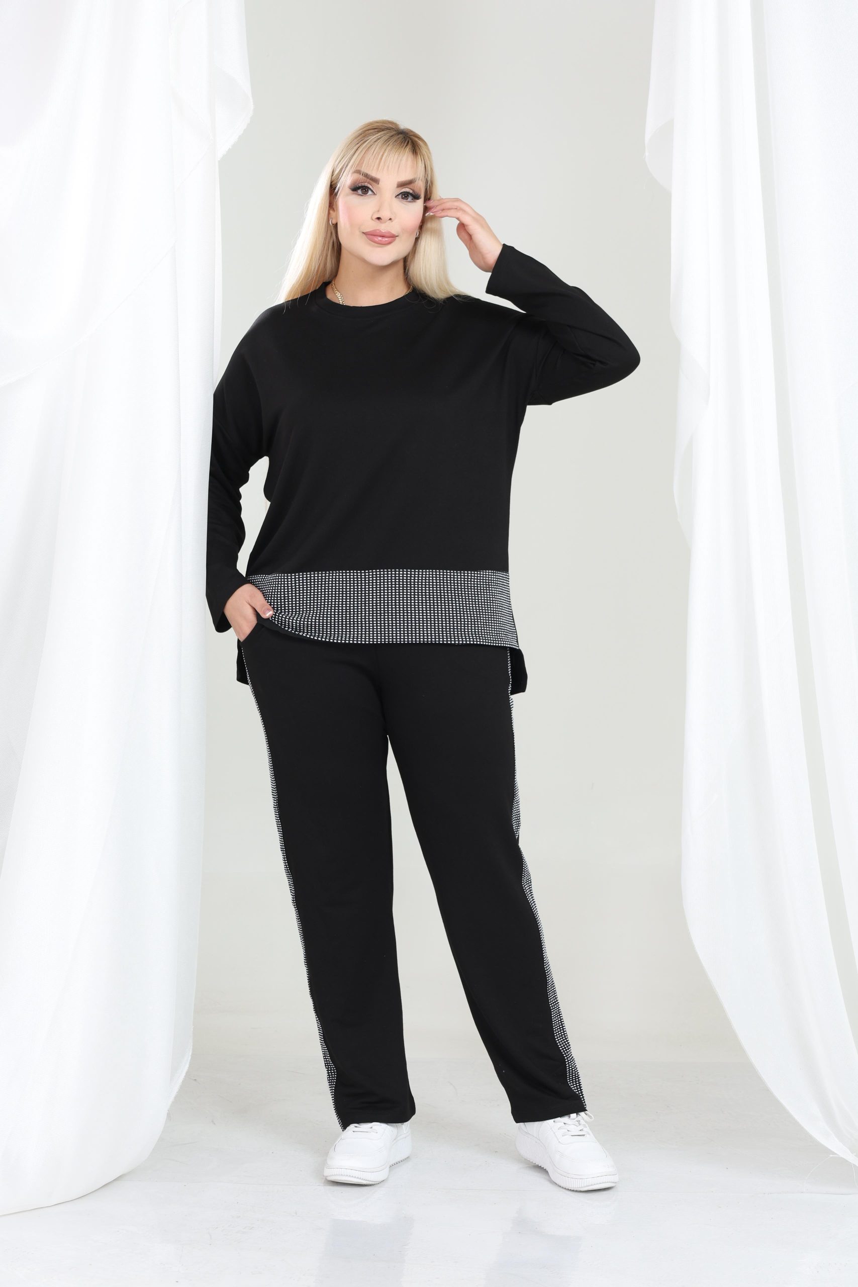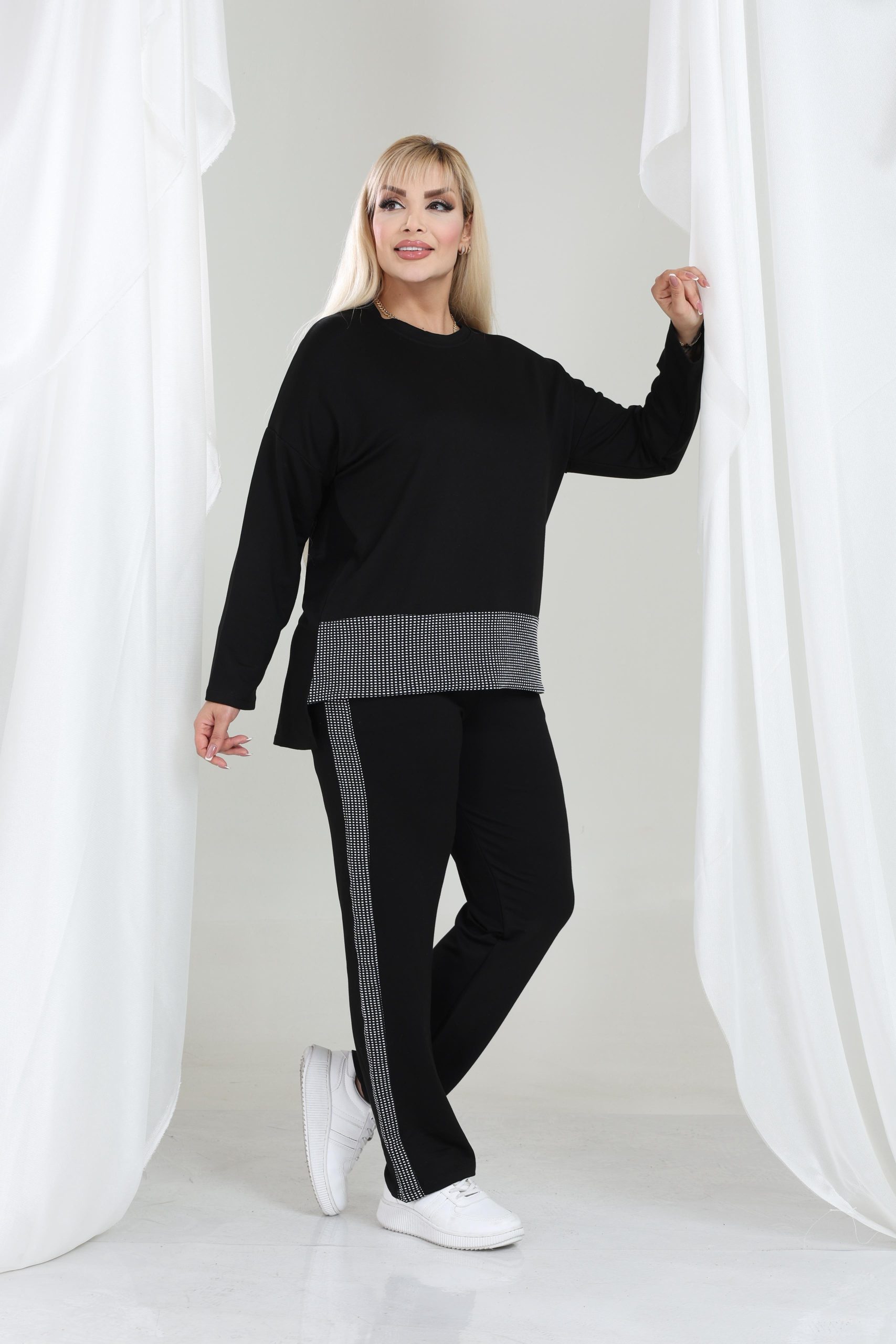 Crna komplet trenerka idealna za jesenje dane, klasičan model koji je odličan za kombinovanje, za sve dame koje vole ležeran stil.