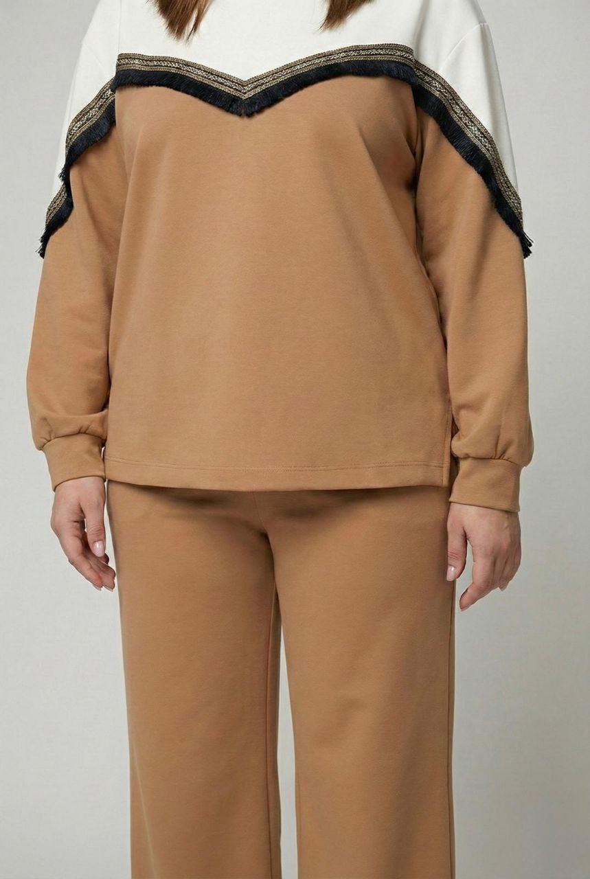 Krem komplet trenerka sa belom šarom u gornjem delu, donji deo je sa ravnim nogavicama, za sve one koje vole udobnost i ležeran stil.