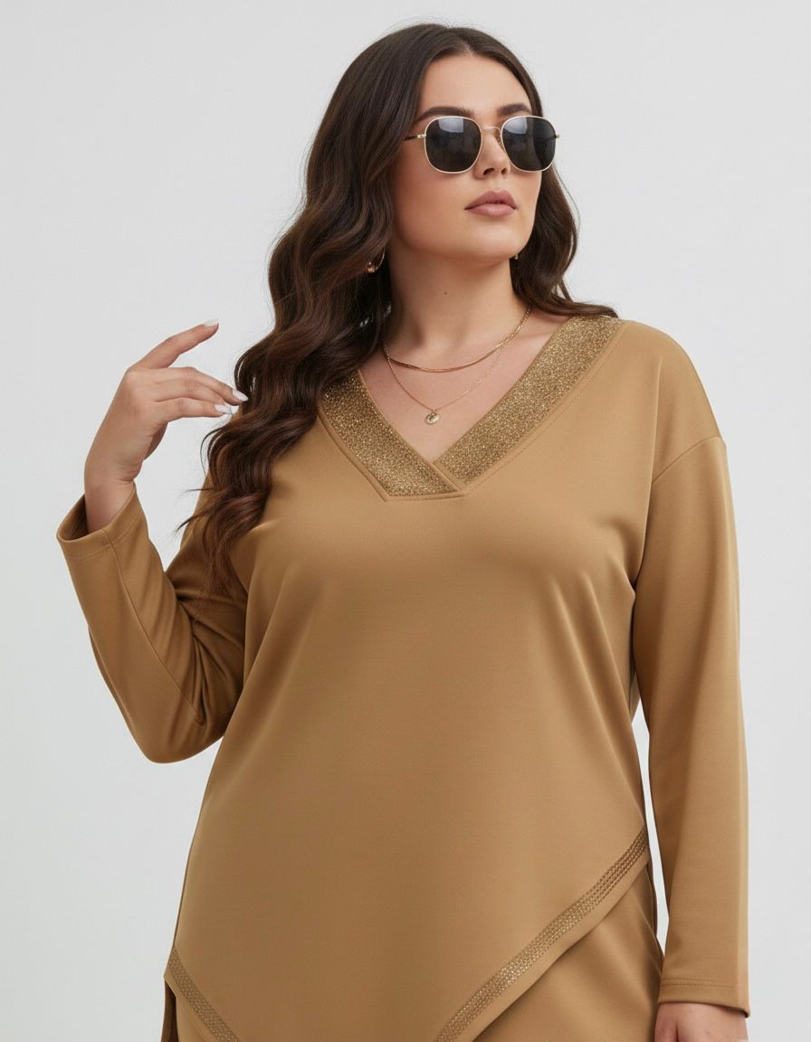 Žuta komplet trenerka sa sitnim diskretnim cirkonima u gornjem delu na tunici, donji deo je sa ravnim nogavicama lastiš je u struku, odličan model za sve dame koje vole ležeran stil.